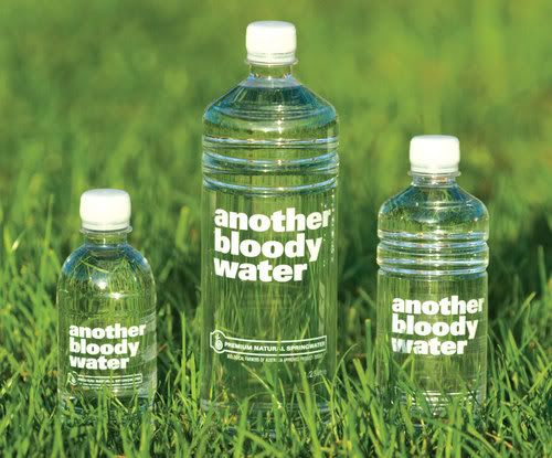 Another Bloody Water is a new bottled water that was designed by Subgroup Design. The bottled water is now available in Australia. The water comes from a spring in the Victorian Alps.