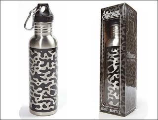 Ok, so this is the new Johnny Cupcakes Water bottle and just to tell you, its pretty DOPE. Its stainless steel with the Cupcake Crossbones Black Camo all over it! If you like to purchase this, you can get it at Johnny Cupcakes.