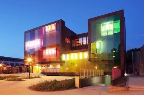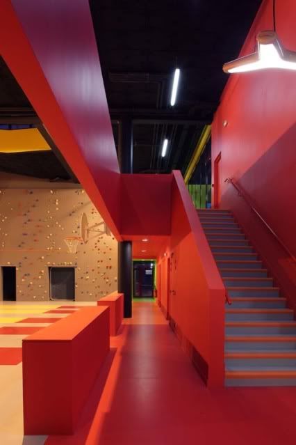 Designed by Paris-based KOZ Architects, and coexisting with several older educational buildings and a residential development, the 1,600 square-meter facility is unexpected and bold in its riotous use of colours both inside and out. A more typical an approach for this type of neighbourhood would have been a structure that vanishes into its surroundings.